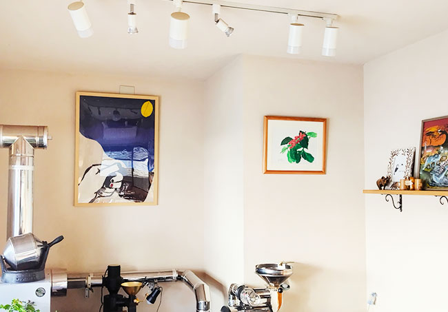 並べて飾っている珈琲の実の水彩画は私の父が描いたもの。